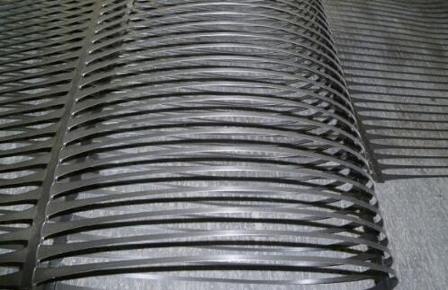 塑料土工格柵經(jīng)過拉伸形成的具有方形或矩形的聚合物網(wǎng)材,按其制造時(shí)拉伸方向的不同可為單向拉伸和雙向拉伸兩種。它是在經(jīng)擠壓制出的聚合物板材(原料多為聚丙烯或高密度聚乙烯)上沖孔,然后在加熱條件下施行定向拉伸。單向拉伸格柵只沿板材長度方向拉伸制成;雙向拉伸格柵則是繼續(xù)將單向拉伸的格柵再在與其長度垂直的方向拉伸制成。